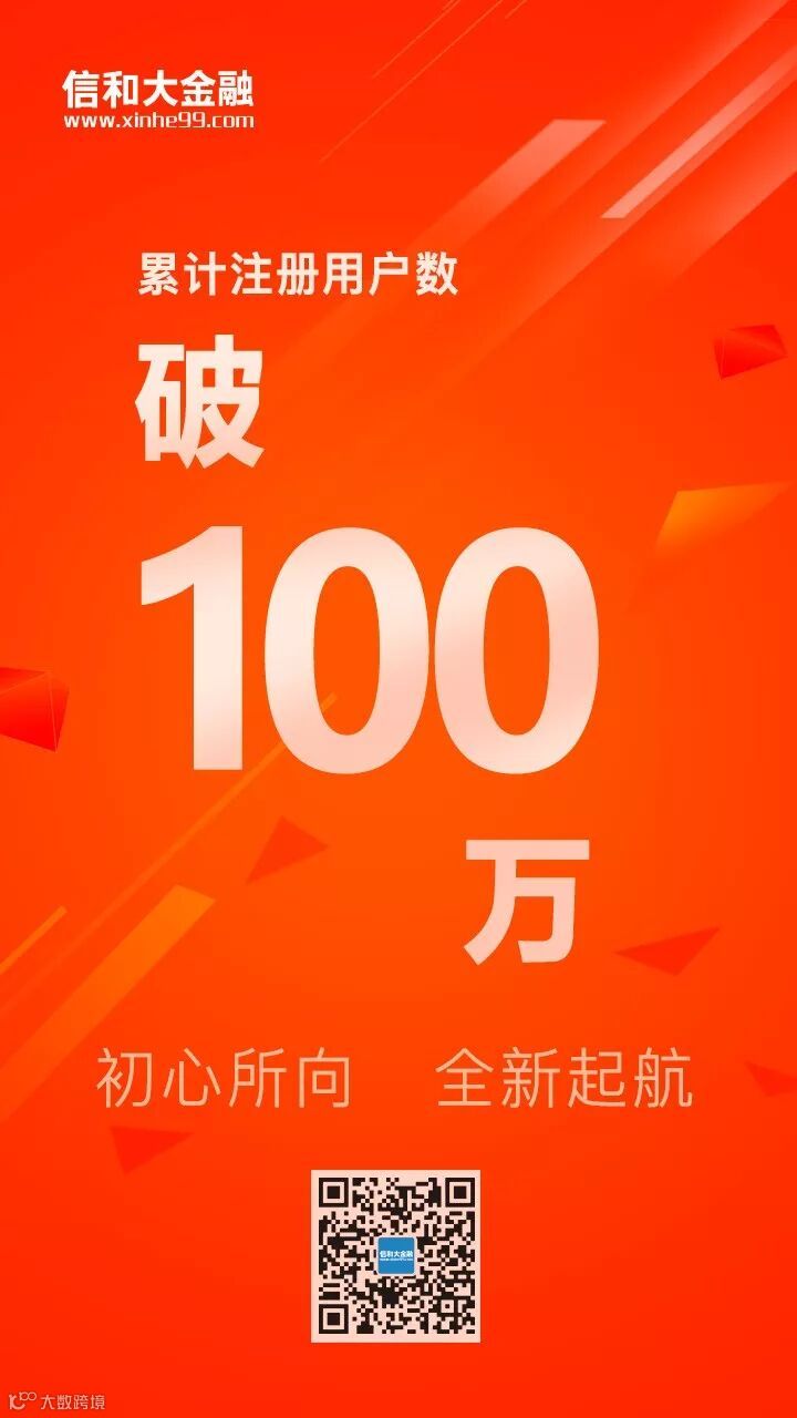 累计注册人数破百万,新的使命让新金融更具价值。对于信和大金融而言,注册用户从无到有,从一万到十万到五十万,再到百万。每一步的跨越都展现了信和大金融的发展轨迹,也是广大投资者信任和携手奋进的结果。