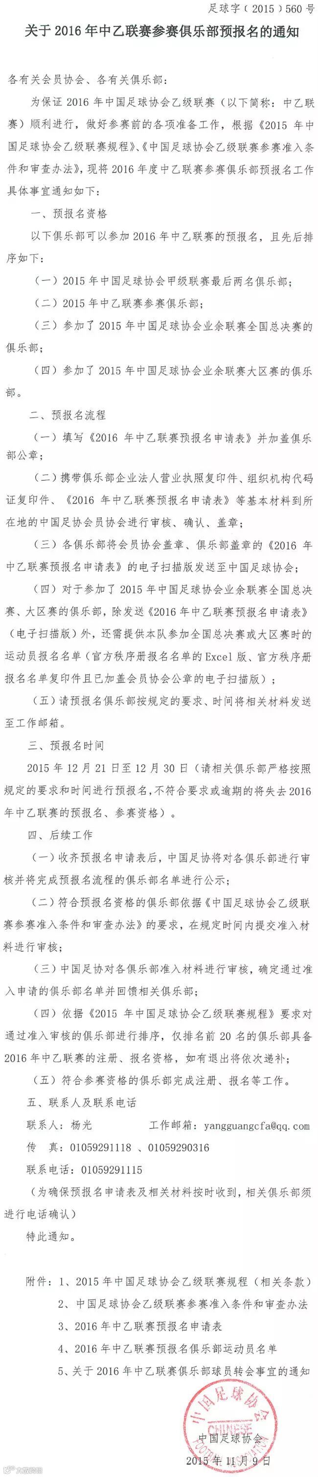 11月16日,足协官网发布了2016中乙联赛预报名通知,正式确认2016年中乙联赛参赛球队由现有的16队扩军至20队。