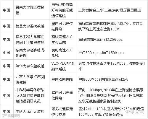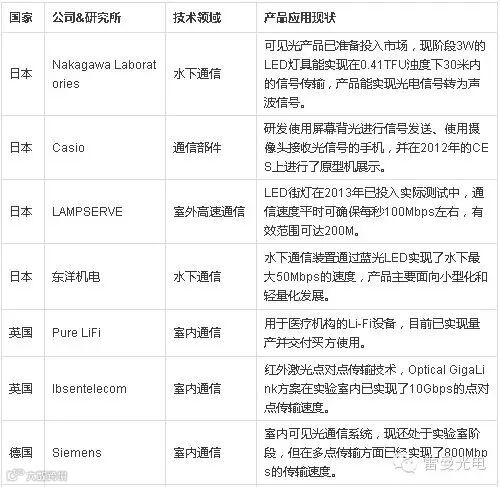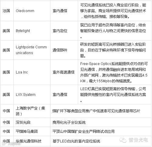 一张表看清全球可见光通信企业现状