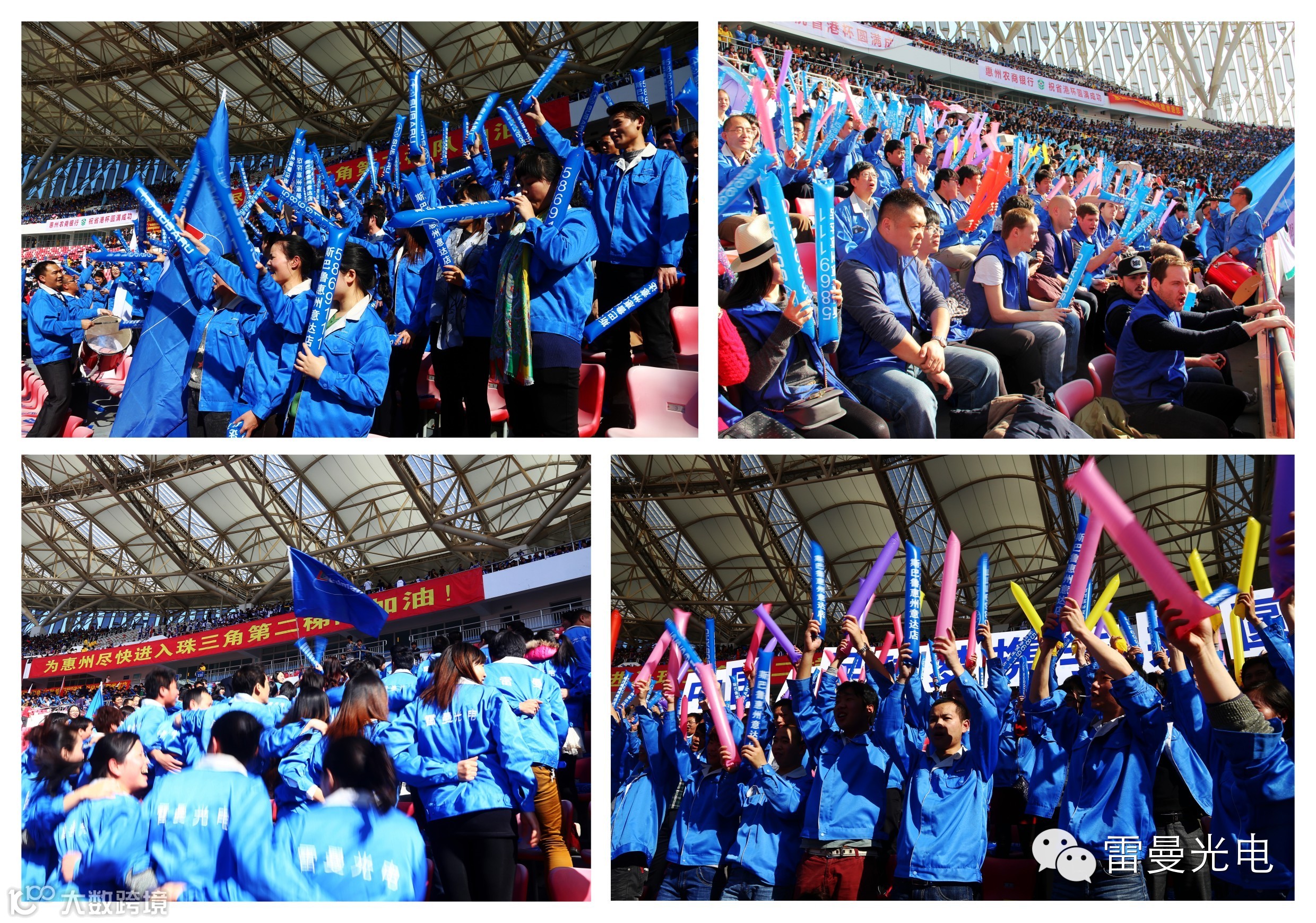 2014年12月31日,惠州奥体中心迎来国内足球盛事——第37届“省港杯”首回合大战。雷曼光电作为第37届“省港杯”足球赛的赞助支持企业,在公司董事长兼总裁李漫铁先生的带领下,两百余名雷曼人前往惠州奥体中心现场为“省港杯”加油,为中国足球这一重要赛事呐喊助威。