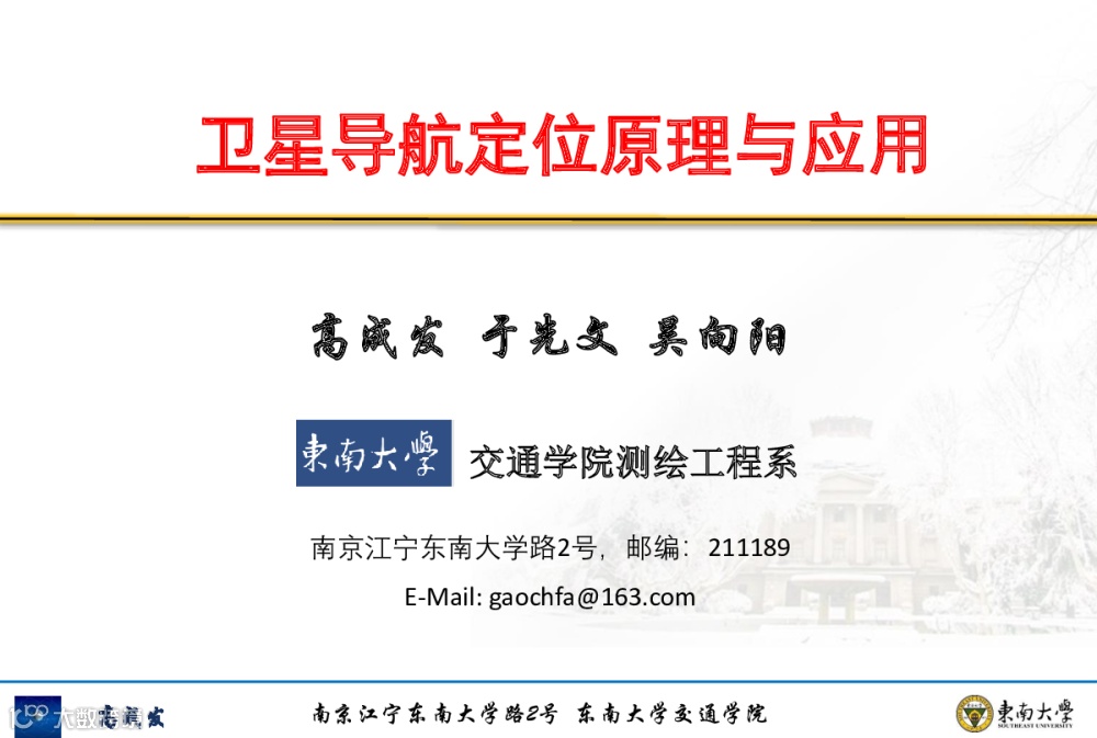 课程视频见本次群发文章中的【第一讲 卫星导航原理与应用】