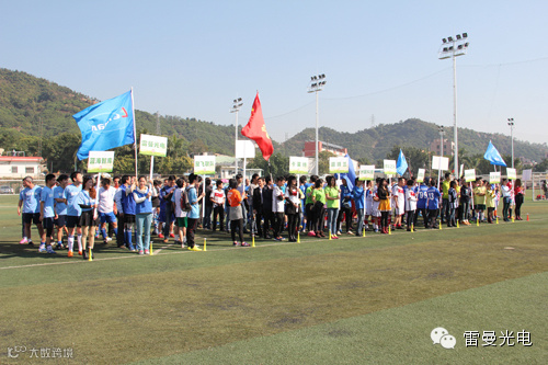 下午14:30,主持人宣布“雷曼光电杯•中国LED首创奖”足球邀请赛开幕式开始,首先介绍了各支足球代表队、裁判员代表以及出席开幕式的嘉宾;随后来自雷曼光电全资子公司雷曼传媒总经理张雪松为赛事致辞、运动员代表和裁判代表宣誓。紧接着进入了开幕式的高潮部分——运动员入场,当高举各对队队牌的足球宝贝和运动员代表入场时,尖叫和呐喊是LED人对足球发自内心喜爱的表现。最后以雷曼光电张雪松先生和协会秘书长赵飞先生为代表的四位领导为比赛开球。标志着开幕式顺利完成,比赛正式开始。
