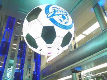 室内4米直径P6全彩LED球形屏。LED球形屏采用吊装方式安装悬挂在主新闻发布大厅的天花顶上给每位到索契的宾客留下了青春活泼、个性亮丽的城市印象。