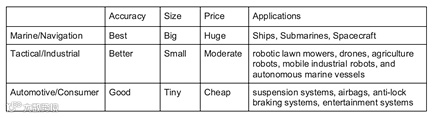 通常情况下,惯性传感器可以分为以下三个性能类别: