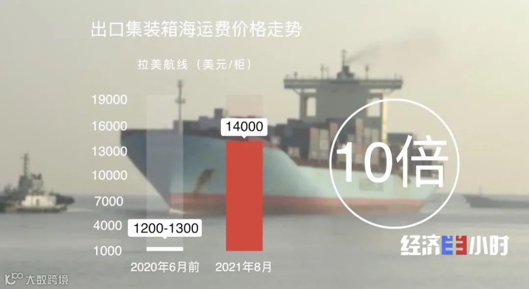 货多箱少,船务公司的舱位费也水涨船高。根据义乌市商务局出口贸易科的工作人员统计,从宁波港出口的集装箱海运费价格这两年涨势迅猛。其中,美西航线2020年8月的运费价格是4400美元/柜,今年8月已涨至18000美元/柜,翻了4倍;中东航线2020年8月的运费价格是1500美元/柜,今年8月已涨至7400美元/柜,翻了将近5倍;而拉美航线在2020年6月以前的运费价格是1200-1300美元/柜,今年8月已翻了10倍,涨至14000美元/柜。