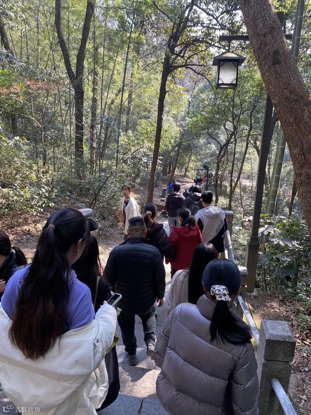 从法华寺攀登上北高峰,下山到山脚下的灵隐寺,团队所有人齐心协力,没有落下任何一个人。