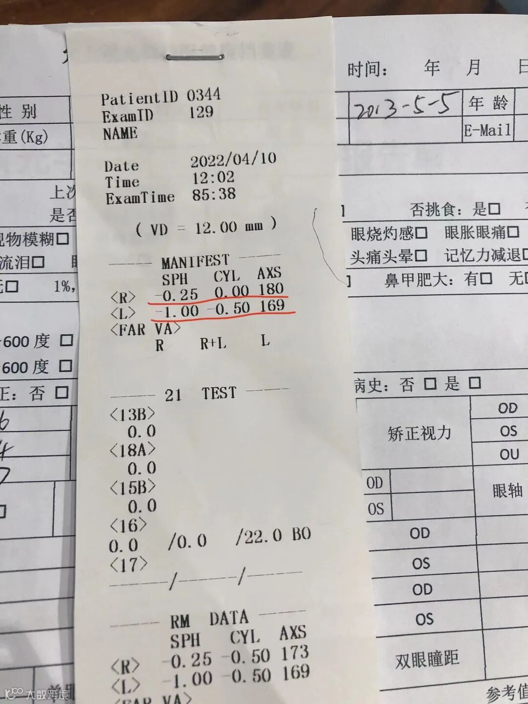 我们可以看到第一次测是在2021.8.4,第二次是在2022.4.10过来复查的,在没有及时控制的情况下右眼眼轴在8个月的时间内增长了0.21,左眼增长了0.33,眼睛“突然”间就近视了,试想一下如果还不及时干预采取措施的话,度数会不会越来越深?