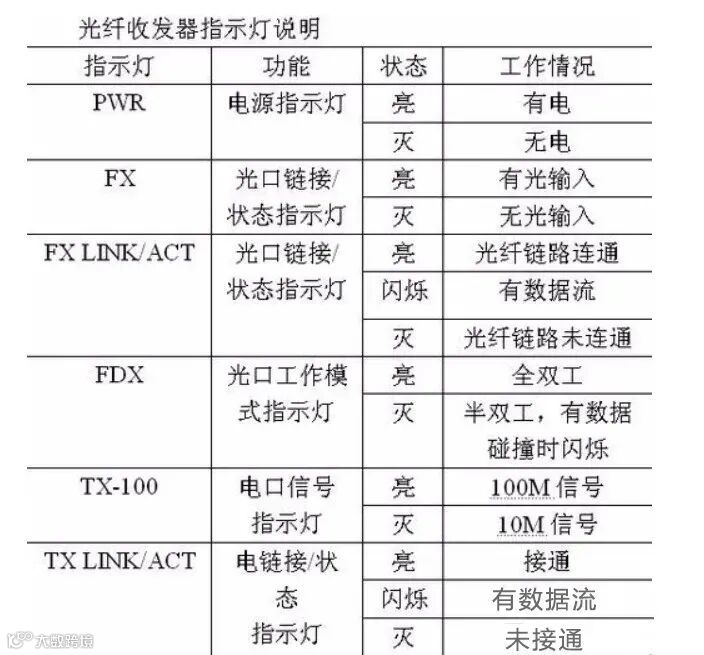 光纤收发器六个灯的作用