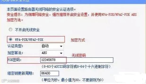 2、再进入无线安全设置:如下图设置加密方式和密码:并记录下来一会儿设置第二台会用到。