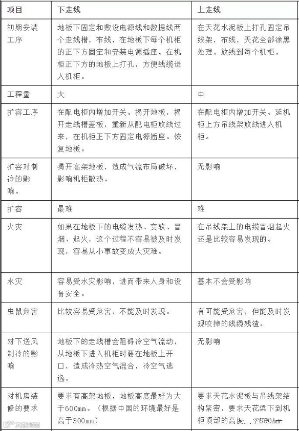 所以,一般做好了防静电板,也可以采用下走线,采用哪种走线还要考虑到客户对数据中心的要求比如成本、维护、机房升级、工期等。