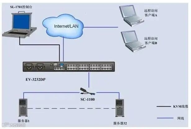 3.断开所有与服务器(PC)相连接的KVM信号线,尤其注意要断开USB或者PS2接口;
