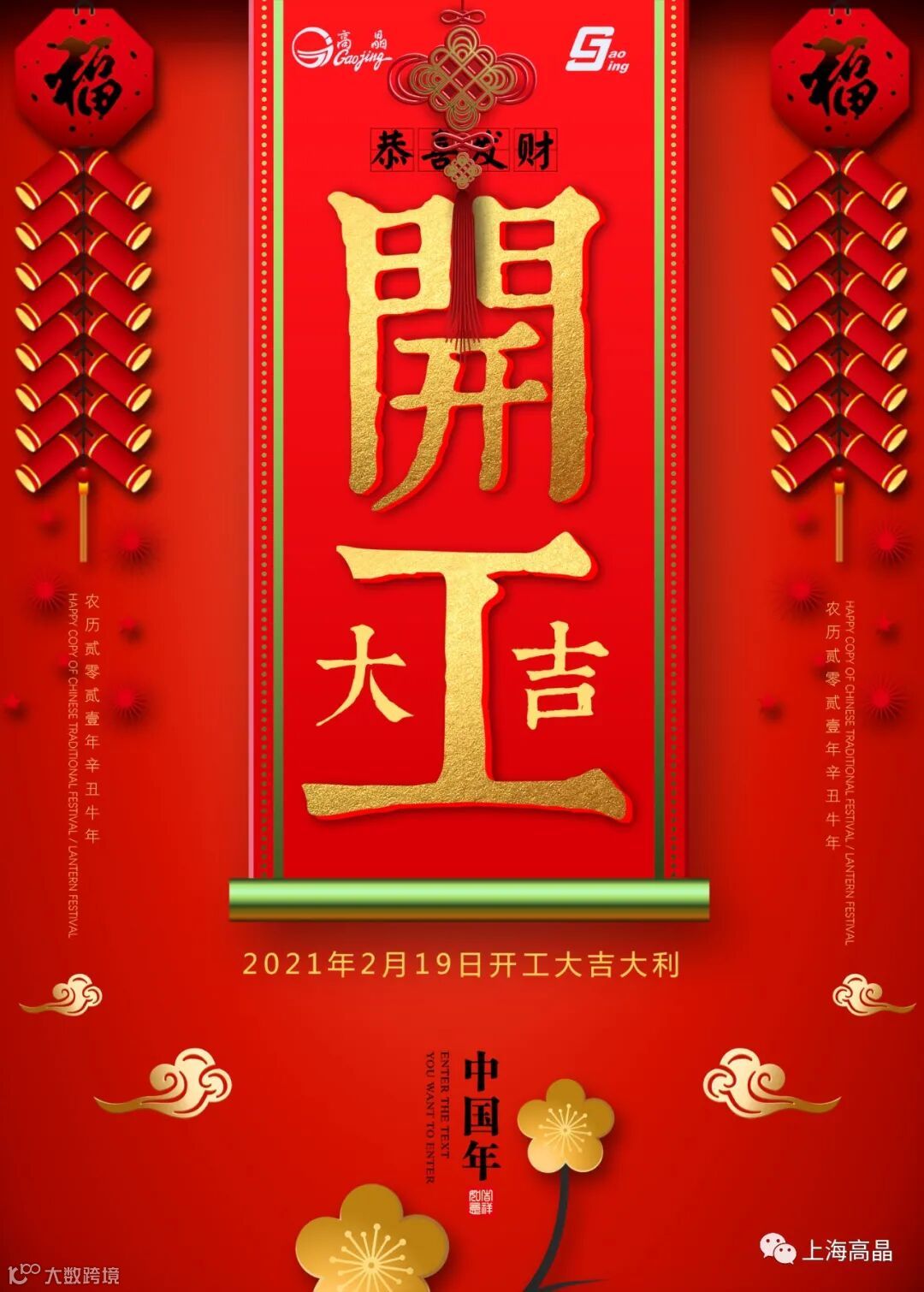 2021年2月19日高晶公司正式开工,奋进的号角已经吹响,新的一年我们一起“犇”腾不息,奋斗不止,让高晶更加精彩、更加辉煌!