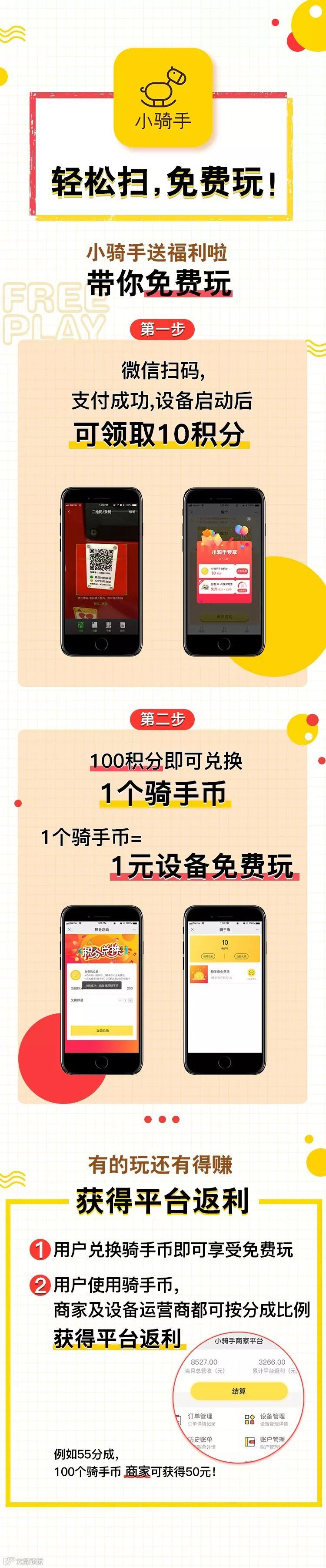 小骑手平台旨在为众多线下自助设备(包括自助售卖机、摇摇车、格斗机等)提供运营管理服务。 公司研发团队精心打造自助设备saas平台,为合伙人实现多方实时分账、设备远程管理、数据精准分析等,达到降本增效的目的。 欢迎广大合伙人咨询加盟!