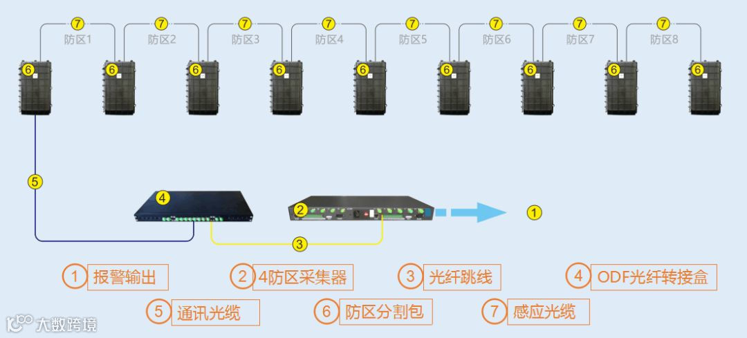 每个防区(光纤长度)最长1公里,真正意义上实现大范围、长距离的整体防范。