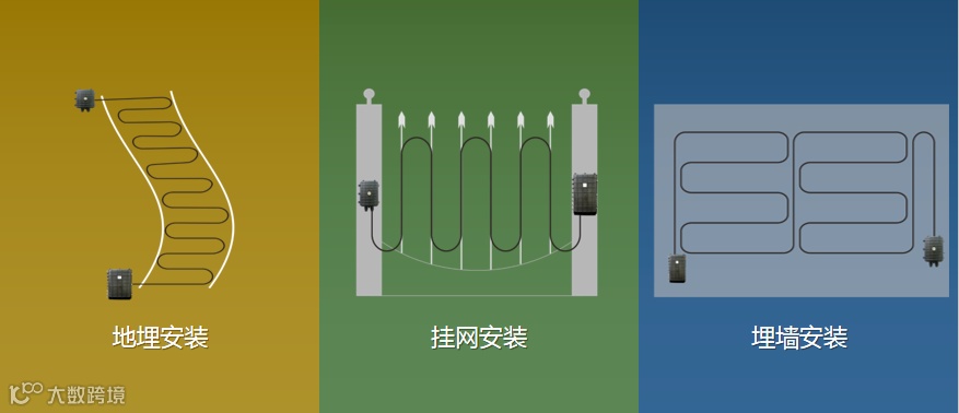 2、振动光纤不同于电子围栏和红外对射安装在围墙或者栅栏上,振动光纤安装方式有一些特殊,主要有地埋、挂网、埋墙等方式。