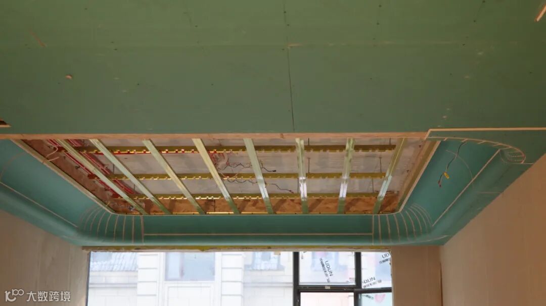 吊顶下挂侧板全部采用9厘板,挡光槽使用木工板,保证吊顶的牢固平整。