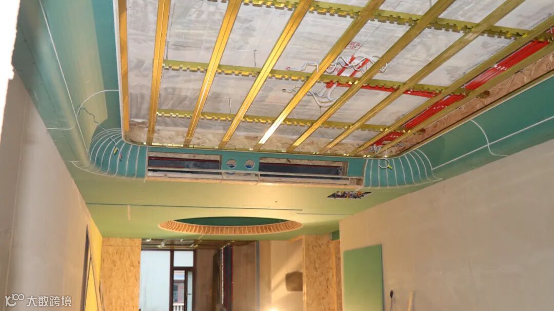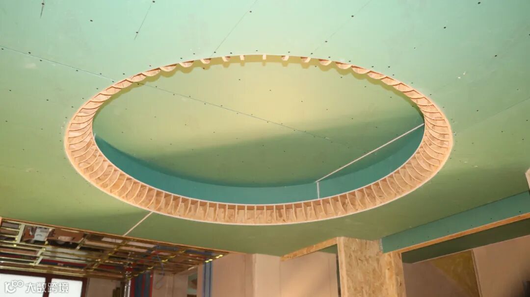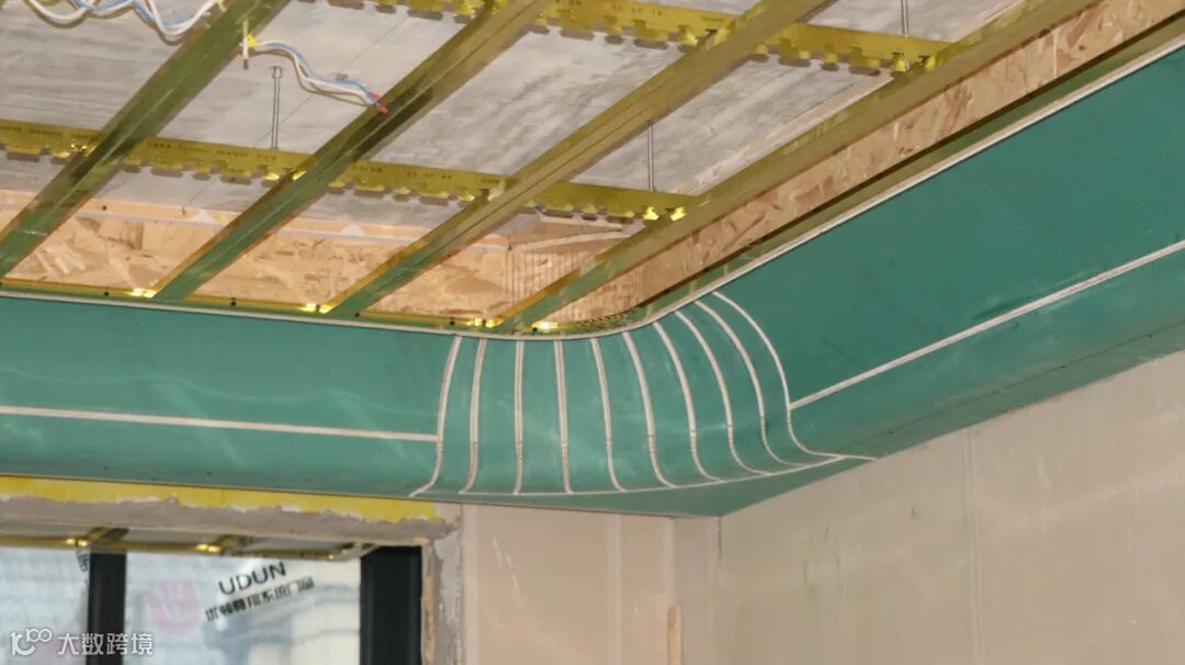 转角位置为了防止有接缝,采用石膏板裁切成L型,整张石膏板的方式做吊顶转角,这样做完转角位置没有接缝,不容易开裂,稳定性会更强。