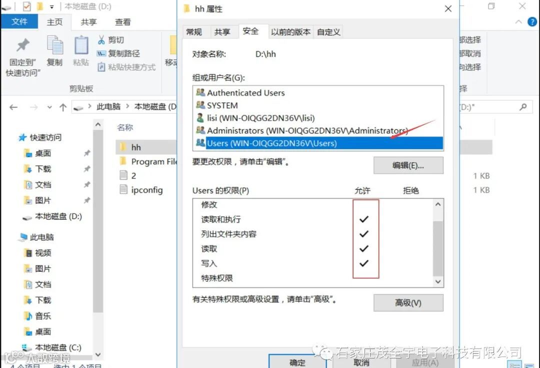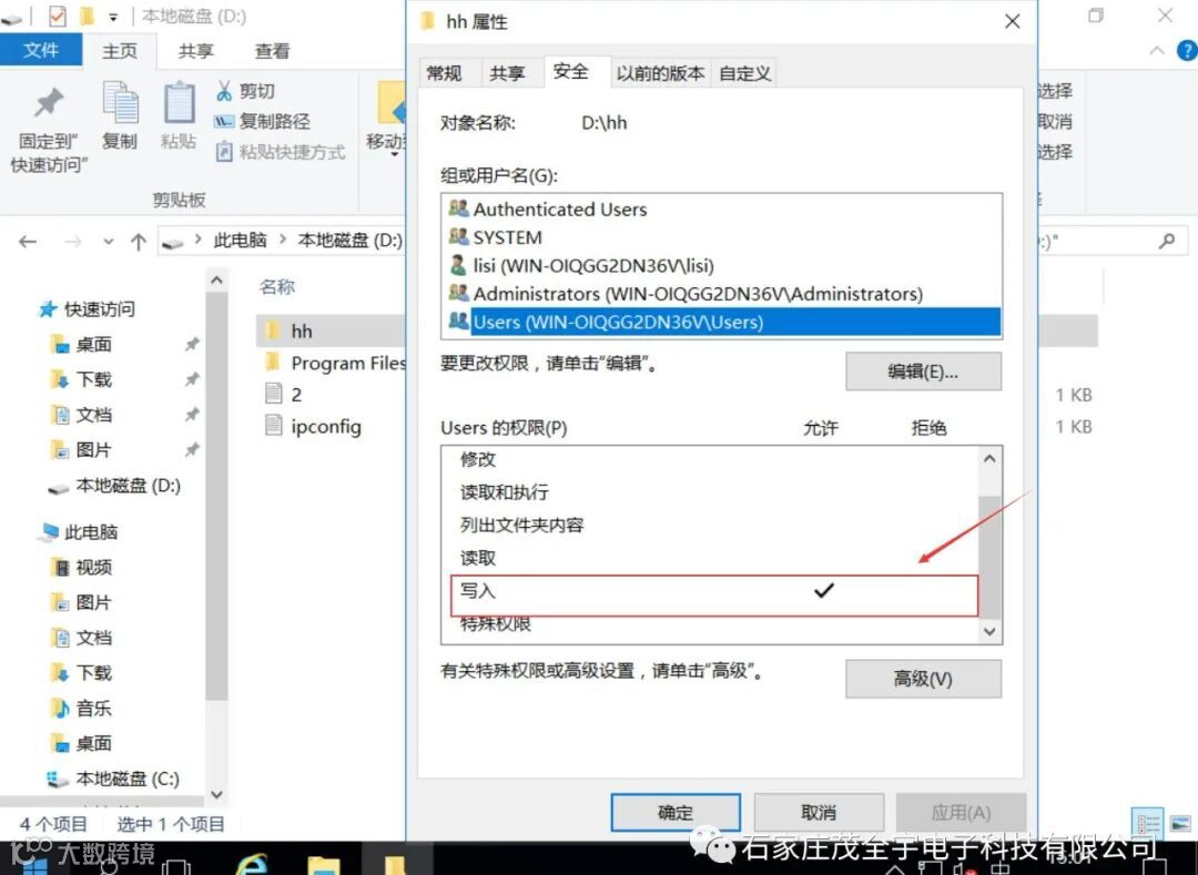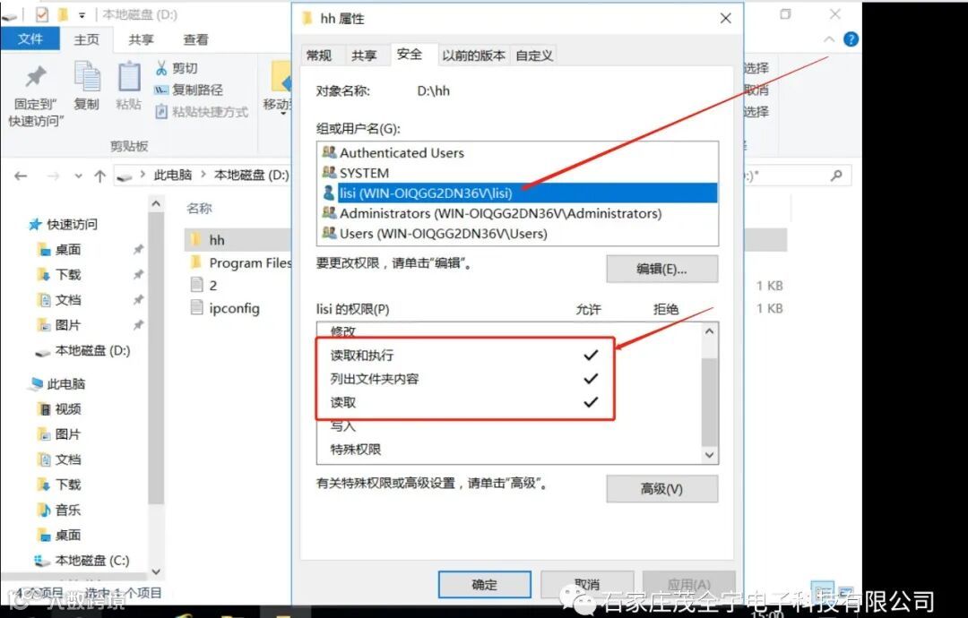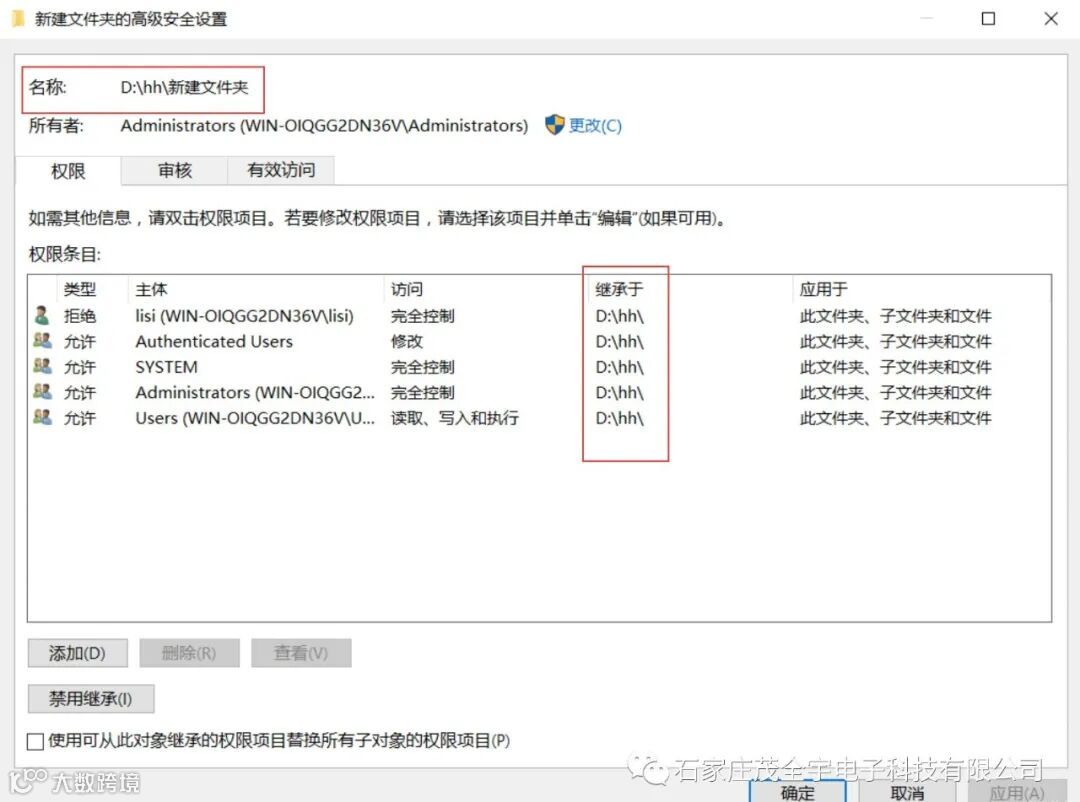 示例2:在hh文件夹中,新建文件夹也会继承hh的权限