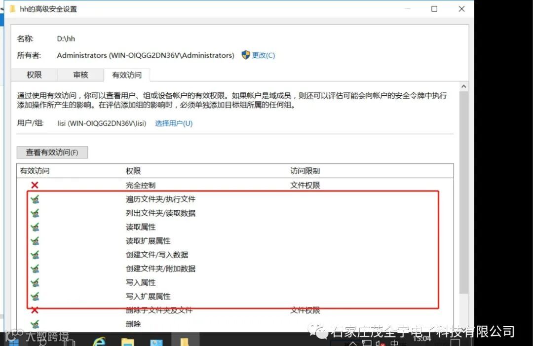用户是否可以修改文件或文件夹的访问控制列表,由于此权限是可以为用户添加或删除权限,会造成很多不安全因素,此权限一般不会给