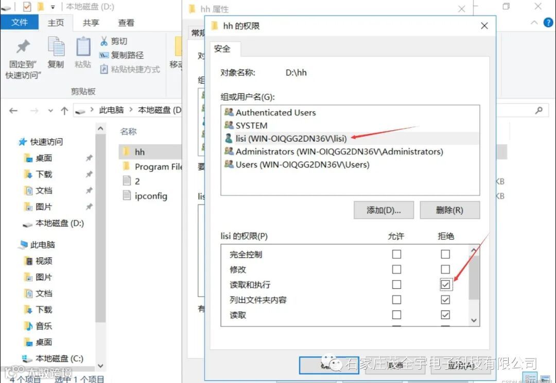 在属性->安全->编辑中设置拒绝权限。高级中不可以设置