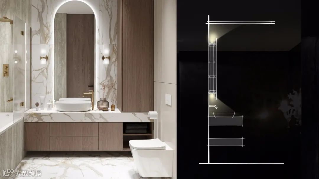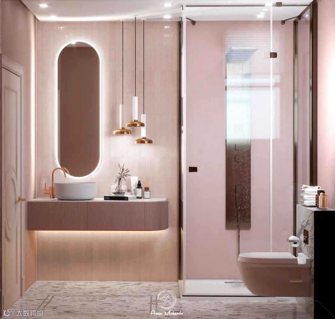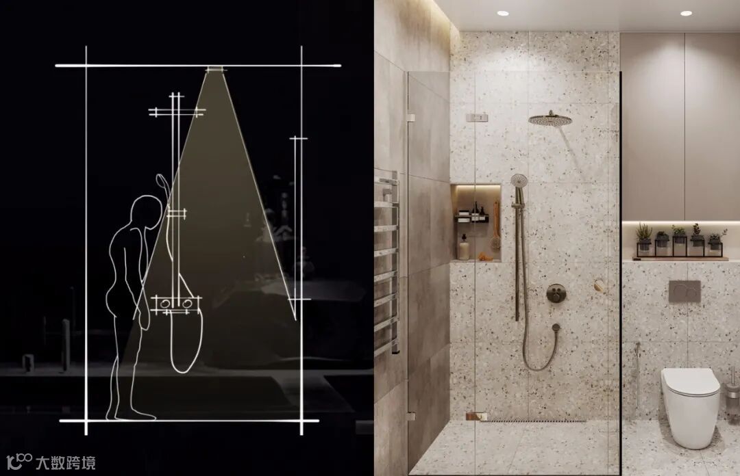 淋浴区选择光线柔和的吸顶灯或者筒灯