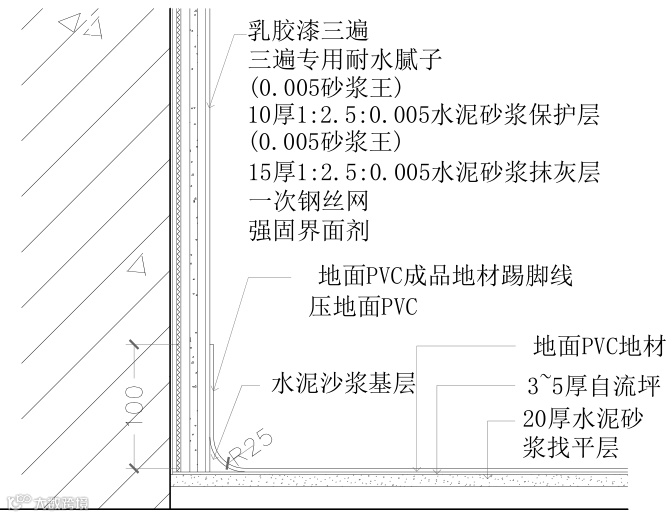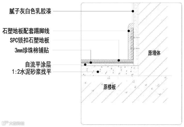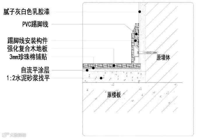 石塑踢脚线施工节点图△