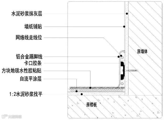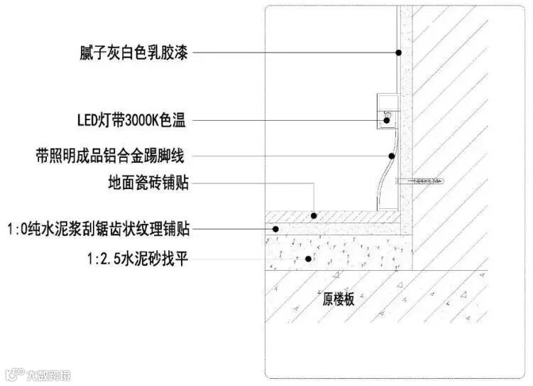 嵌入式踢脚线施工节点图△