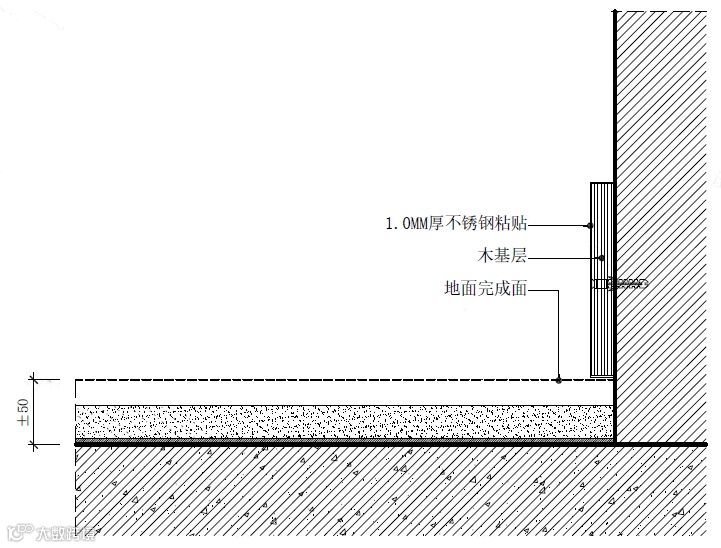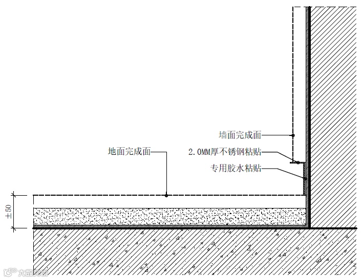不锈钢踢脚线施工节点图△