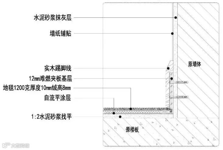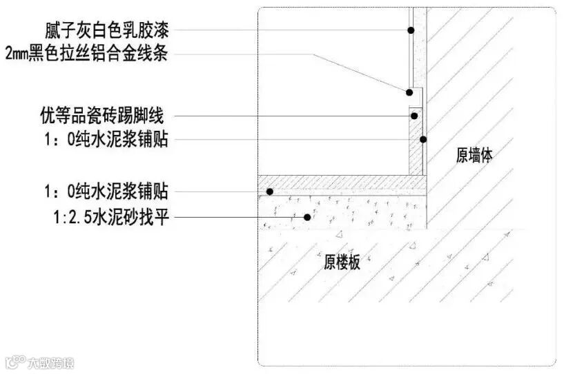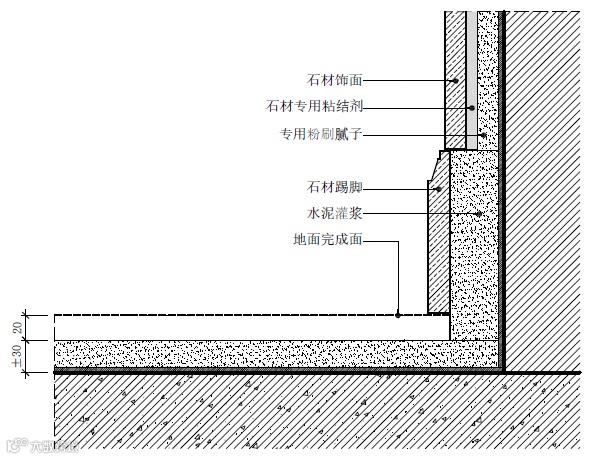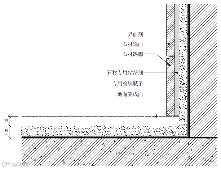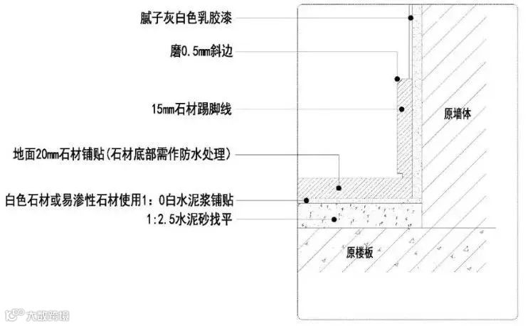 石材踢脚线施工节点图△