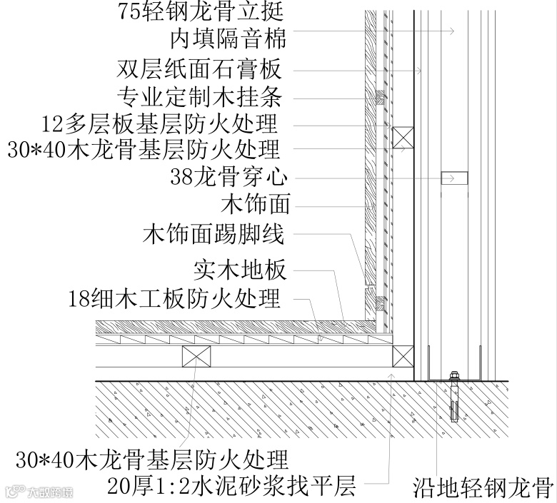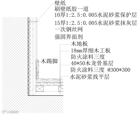 实木踢脚线施工节点图△