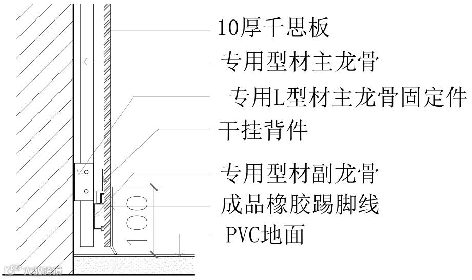 铝合金踢脚线施工节点图△
