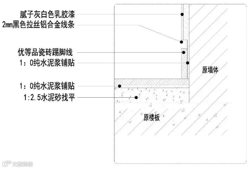a、“齐平”收口木质踢脚做法;