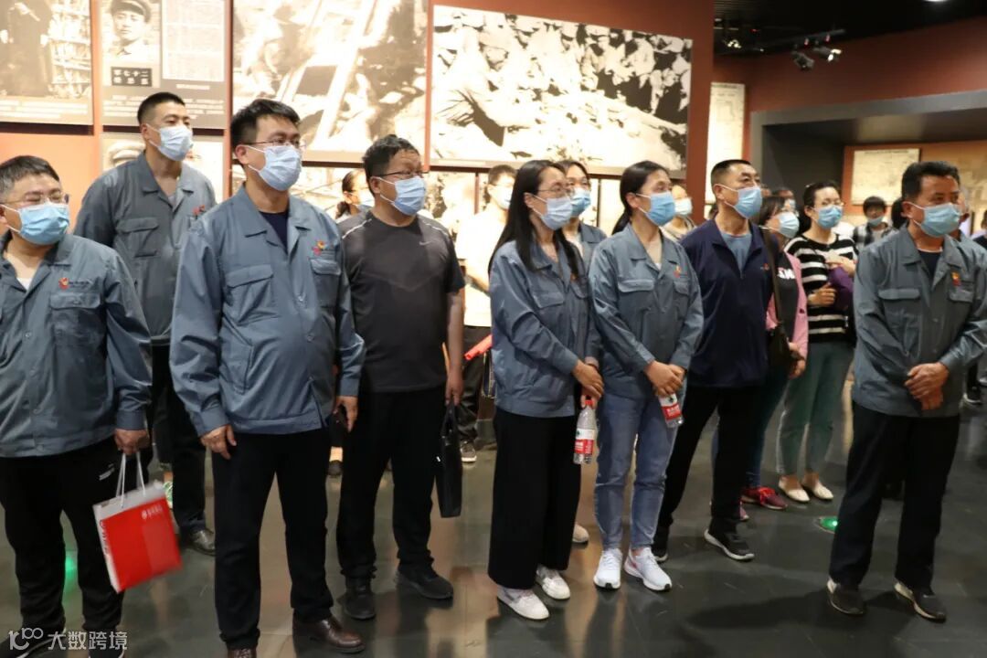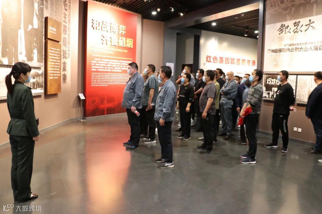 在纪念馆门前广场,全体党员面向鲜红的党旗,重温入党誓词,表达对党的无限忠诚和崇高敬意。