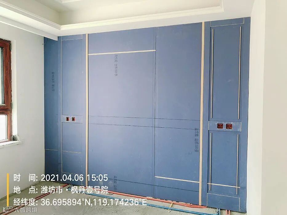 二、基层制作所采用欧松板、木方应做单面防火、防潮、防虫处理;三、木工板不得直接接地,最底部需距离地面完成面10MM左右; 四、封板前厨房卫生间排风管道预埋,无关孔洞堵死;
