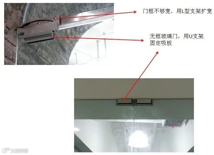 当门框不够宽时,借助L支架拓展门框宽度,让磁力锁得以“挂起来”。