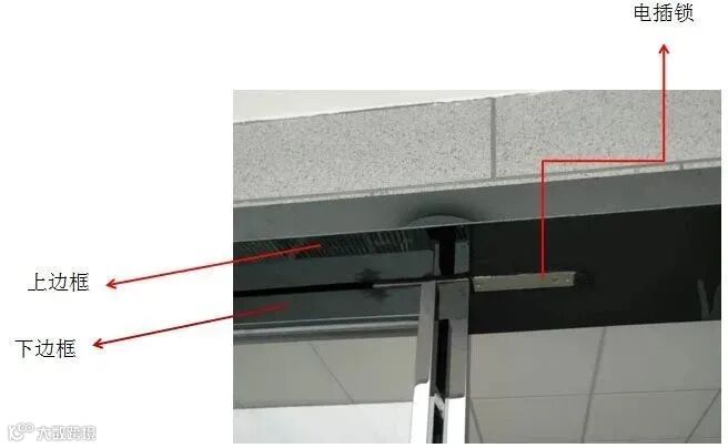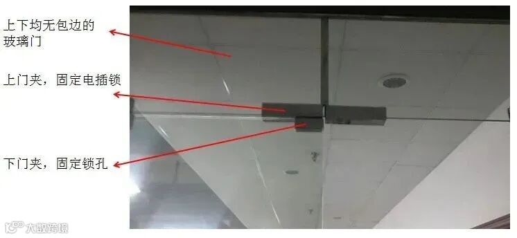 电插锁是暗装,要将锁体埋入门框内,上图是电插锁最常见的安装方式,要求玻璃门上下均有包边。