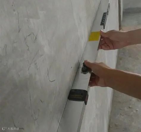 施工前需要进行墙面检查,除了要检查墙面划痕、开裂、凹陷、污渍等瑕疵,还要检查墙面的平整度和含水率等。