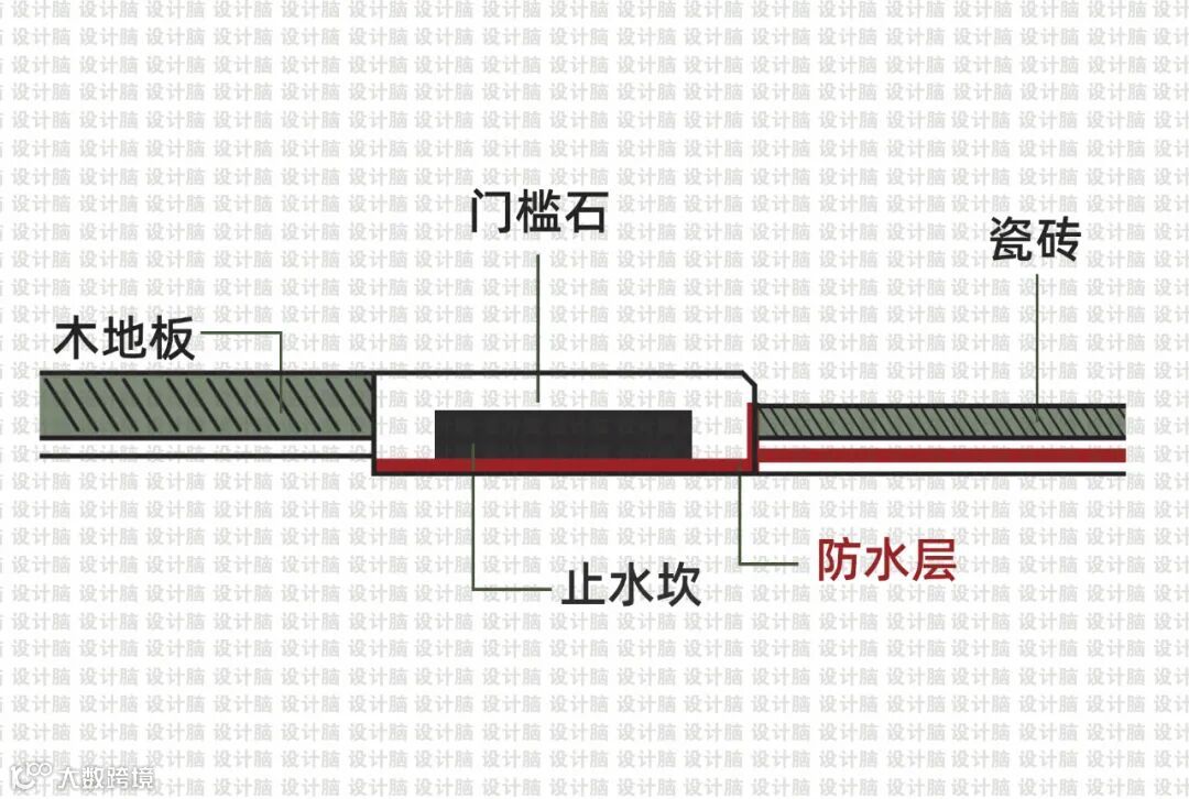 尤其是在厨房、卫生间门口的门槛石,本身的结构和高度,要略高于厨房和卫生间的地面,以起到阻隔水流溢出的作用。(厨卫空间的地面本身就要比别的空间低)
