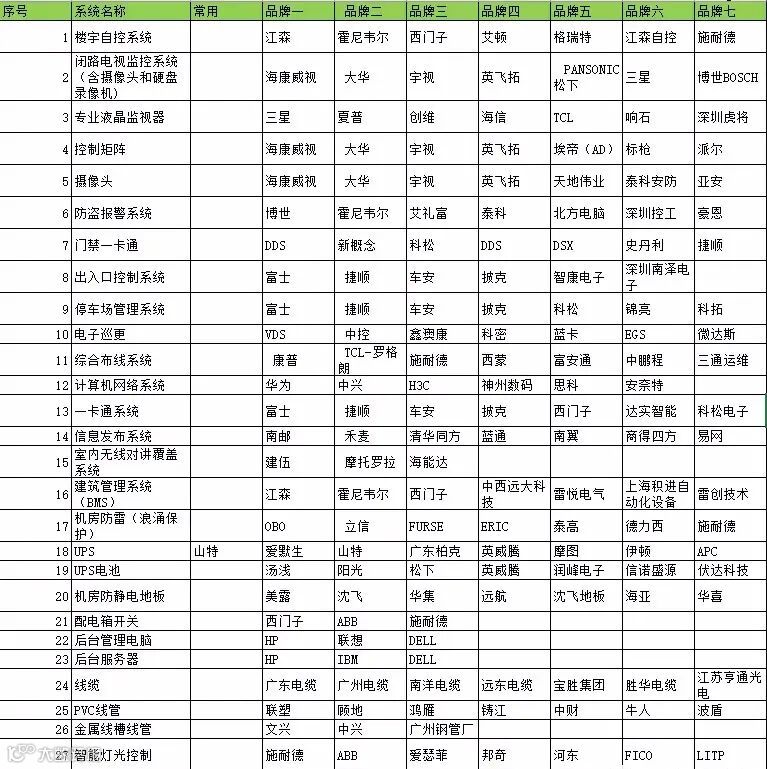 了解弱电常见系统的设备品牌、设备报价及施工报价,这个在项目报价时至关重要,熟悉设备情况对于厂家选择与报价有更综合的对比,让你在甲方面前更加自信与专业。