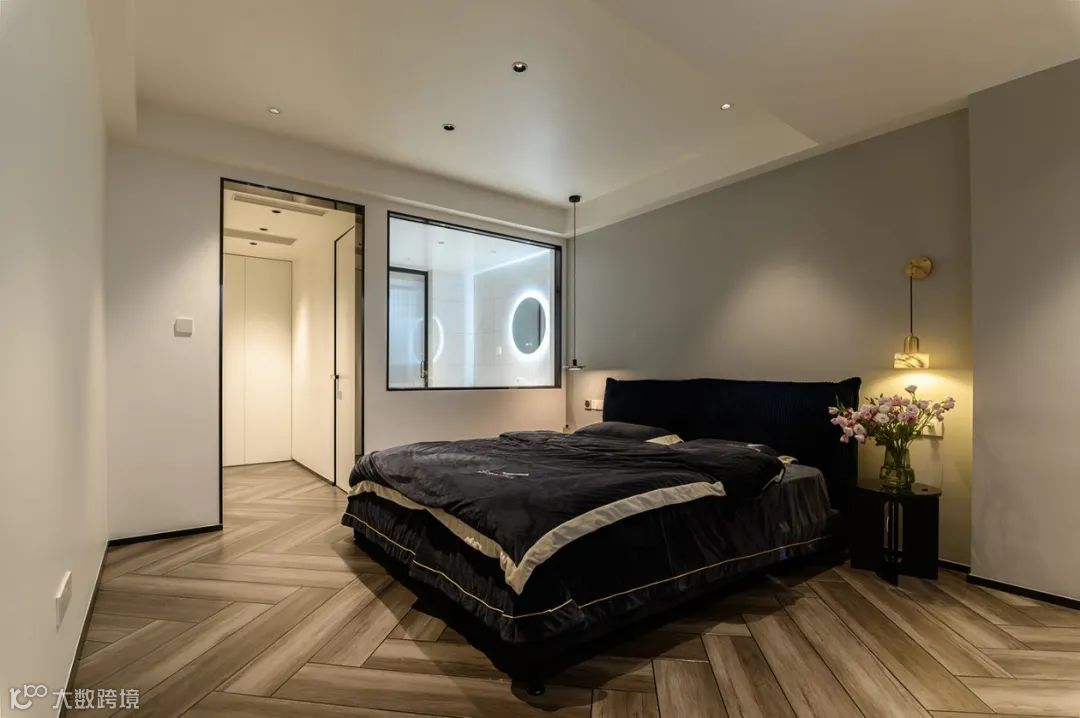 面积允许的话,在卫生间前面设计一个小型衣帽间,既解决收纳问题,又让卫生间对卧室床,有个缓冲。风水上不直接对门,住里面心态也会感觉好一些。