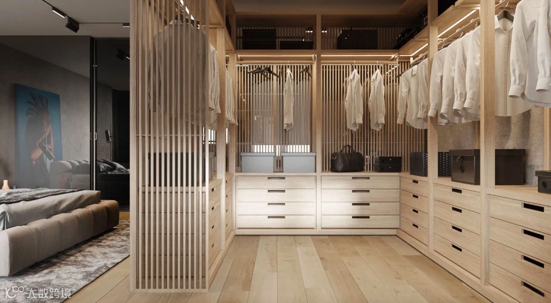 99%以上的人,都想拥有一个衣帽间,奈何家里面积有限,不妨考虑一下把主卫直接改衣帽间: