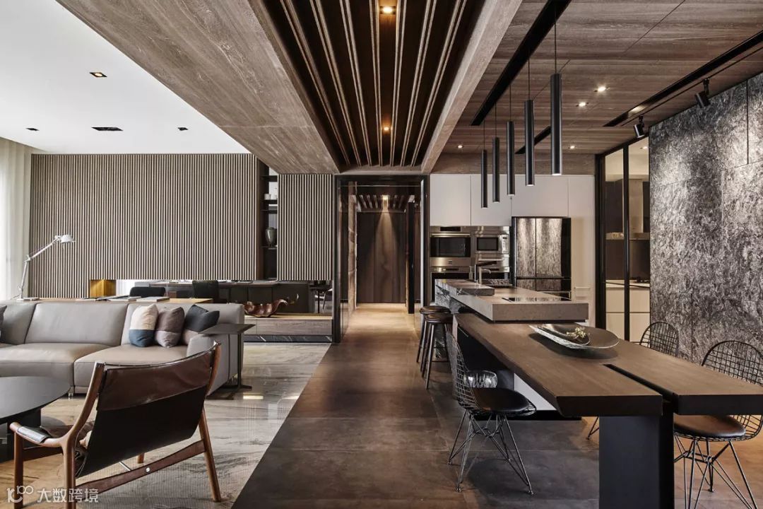 格栅造型的木质吊顶,看起来没有太多复杂的设计,却给人一种简约却不单调的视觉呈现。