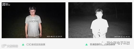 在夜晚,除了可以自主选择全彩夜视和黑白夜视外,萤石还为C3C全彩标准版新增了第三种夜视模式:智能夜视。智能夜视模式下,默认为黑白夜视,当检测到人形时,设备自动打开暖光灯,切换为全彩夜视。