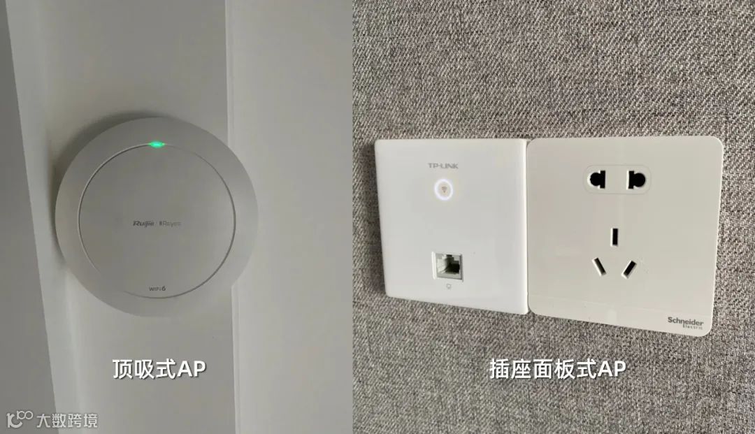 市面上的AP大多数以两种形态为主,一个是吸顶式,另一个是插座面板式。如果设置吸顶式,那么在做吊顶的时候,就要考虑要提前进行预设管线,插座面板式,可以把原本接入网线的面板,改成AP面板。