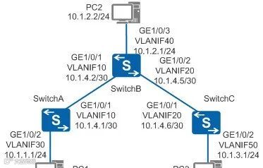 [SwitchC-Vlanif10] ip address 10.1.4.6 30[SwitchC-Vlanif10] quit