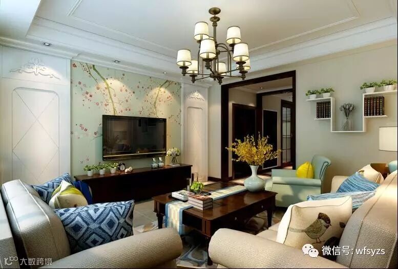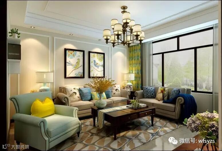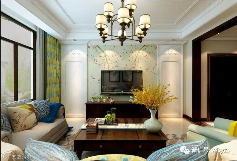 客厅:式客厅风格较多采用嵌入式石:美膏吊顶,搭配复古吊灯,营造出一种怀旧、浪漫的感觉。以瓷砖作为地面装饰材料,光泽感极佳,在沙发区铺上大幅花纹地毯,使空间区域划分更加清晰。复古造型的组合沙发,以及茶几都具有上乘的质感,让美式古典风格得以进一步的彰显。