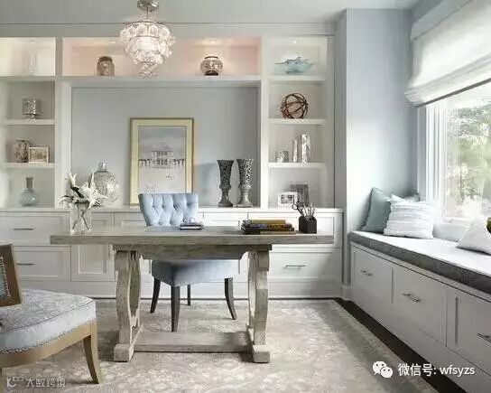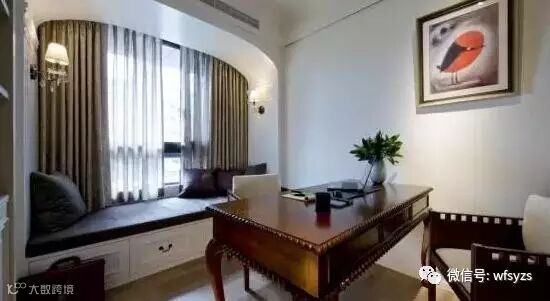 在书房内设计假飘窗也很棒啊,不管是飘窗+书柜+书桌的一体设计,还是单独摆放书桌,都很棒啊~