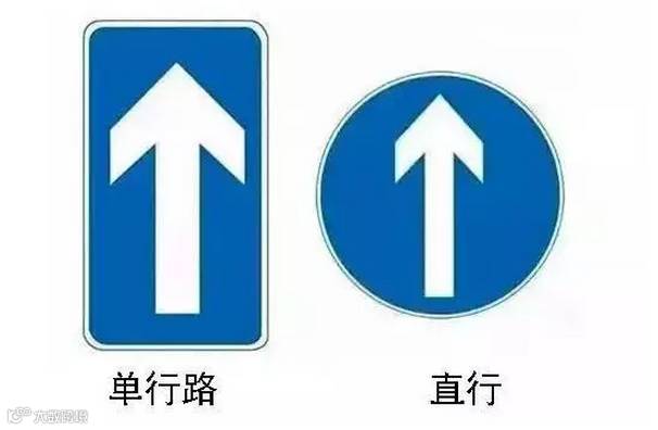 长方形里有箭头,就是只能往一个方向走的单行线,是禁止掉头的;圆圈有箭头则表示直行车道,不能转弯。