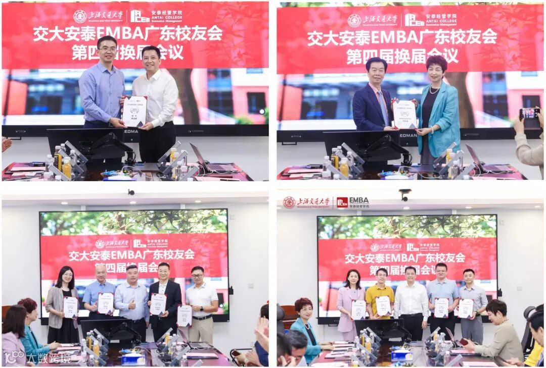 交大安泰经管学院副院长朱喜、EMBA 中心主任周道力、EMBA广东校友会终身荣誉会长欧阳泉、EMBA广东校友会会长李漫铁共同为新一届组织成员颁发荣誉证书。