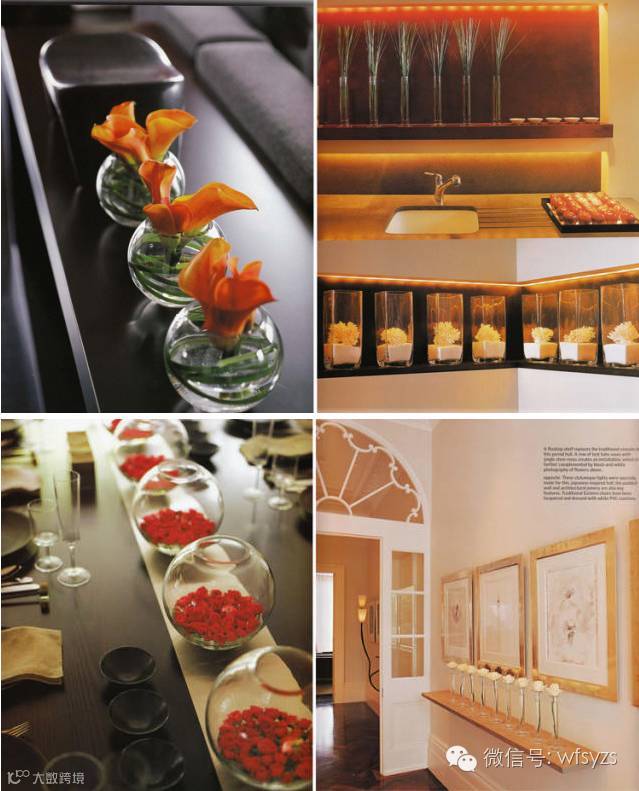 客厅茶几,电视柜来组花艺,不经意的点缀,肃穆的现代家具瞬间充满活力。